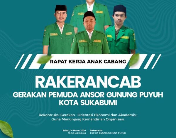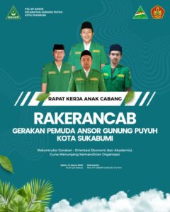 Pimpinan Anak Cabang Gerakan Pemuda Ansor Kecamatan Gunungpuyuh Kota Sukabumi akan menyelenggarakan kegiatan Rapat Kerja Anak Cabang PAC GP Ansor Kecamatan Gunungpuyuh Kota Sukabumi.