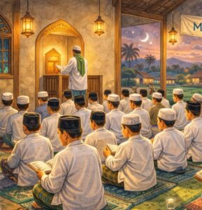 Méméh dur bedug Isya ogé masigit geus dipinuhan ku kolot – budak, lalaki – awéwé. Arék nedunan sholat sataun sakali sabulan lilana, sholat tarawéh.