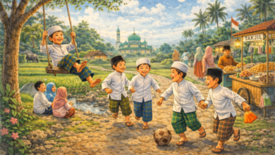 Ngagimbung di warung tara lila, barudak anu masih meujeuhna bangor sok ngadon moyég di lapang masigit bari nyundutan pepetasan.