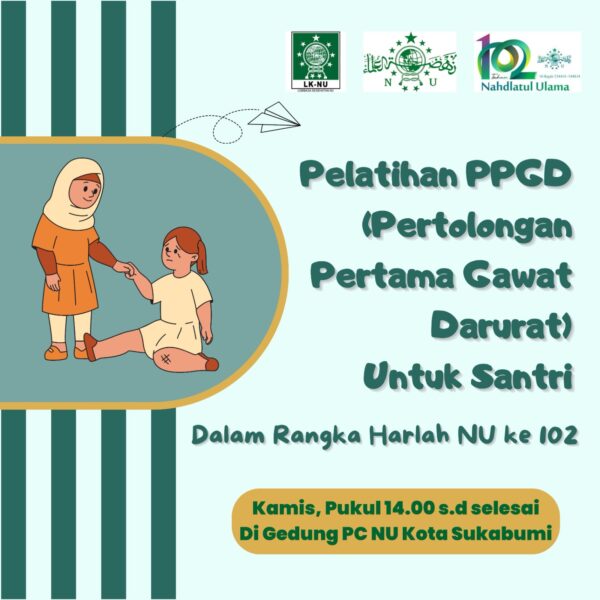 Masih dalam rangkaian kegiatan Harlah Ke 102 NU, Lembaga Kesehatan PCNU Kota Sukabumi Selenggarakan kegiatan Pertolongan Pertama Gawat Darurat (PPGD), (13/2/2025)