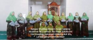 Satgas Mustika Mesem Anak Cabang Lembursitu membagikan 20 paket sembako untuk 20 lansia di 5 Ranting Muslimat NU pada hari Rabu 24 Desember 2025.