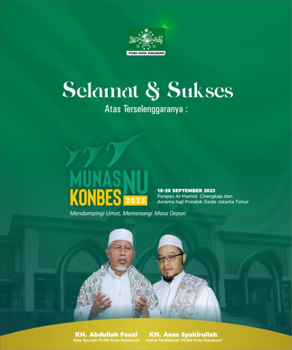 Keluarga Besar Pengurus Cabang Nahdlatul Ulama (PCNU) Kota Sukabumi Mengucapkan Selamat Dan Sukses Musyawarah Nasional (Munas) Alim Ulama dan Konfenrensi Besar (Konbes) Nahdlatul Ulama.